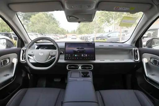 小鹏MONA M03的内饰设计则更注重未来感与科技感的结合。中控台采用了T字形设计,搭载了一块15.6英寸的超大悬浮触摸屏,屏占比高达88.5%,视觉冲击力十足。尽管中控台下部仍然采用硬塑料材质,但整体设计依然非常现代,充满未来感。